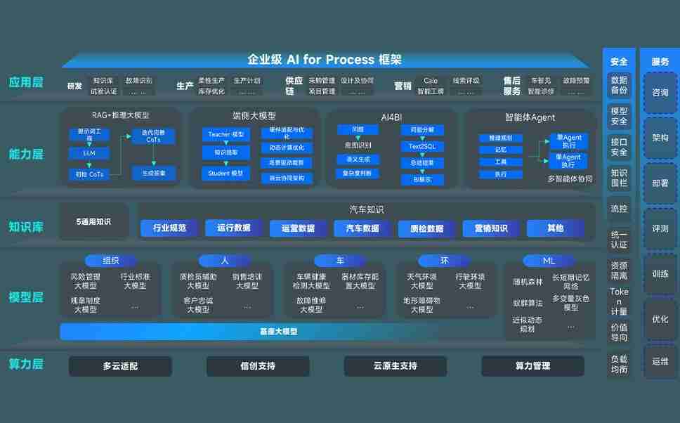 NG娱乐问学智车解决方案是一套基于AI技术的汽车行业智能化系统,,,,覆盖从底层算力到顶层AI应用的全栈方案。。。。方案由算力层、、、、模型层和应用层组成:算力层,,,,方案支持多种一体机配置,,,具备云端灵活部署、、、、多云适配以及动态优化计算资源的能力;模型层,,,,NG娱乐问学平台版提供了企业级AI应用一站式构建与管理平台,,,支持基于后训练强化技术的汽车企业专属模型的训练、、、评测和运营;应用层,,,,NG娱乐问学DeepSeek版提供包括超级员工、、智能招采、、、智能营销、、、、智能客服、、、AI for BI等一系列解决方案,,可助力汽车行业实现数字化转型,,,,让管理更智能、、响应更敏捷。。